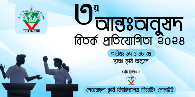 শেরেবাংলা কৃষি বিশ্ববিদ্যালয় ডিবেটিং সোসাইটি আয়োজিত ৩য় আন্তঃ অনুষদ বিতর্ক প্রতিযোগিতা ২০২৪ অনুষ্ঠিত হয়। প্রতিযোগিতায় চ্যাম্পিয়ন হয় ফ্যাকাল্টি অব এগ্রিকালচার এর দল এগ্রি এন্থসিয়াস্টিক।