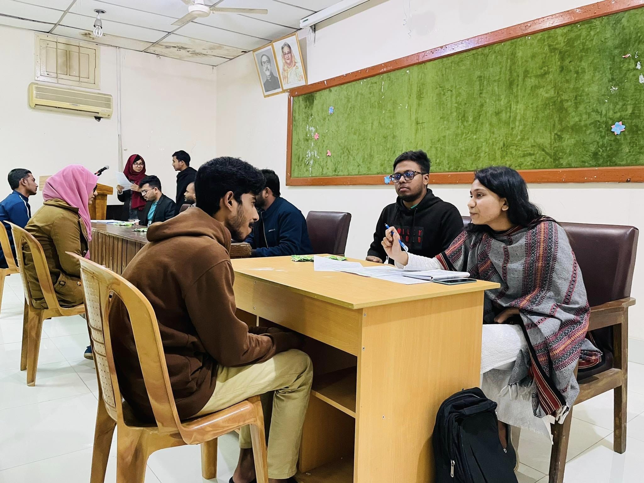 শেকৃবি ডিবেটিং সোসাইটি এর নবীন বিতার্কিকদের ভাইভা গ্রহণ এবং প্রাথমিক মূল্যায়ণ পর্ব আয়োজিত হয় শেরেবাংলা কৃষি বিশ্ববিদ্যালয় সেমিনার রুম এ।