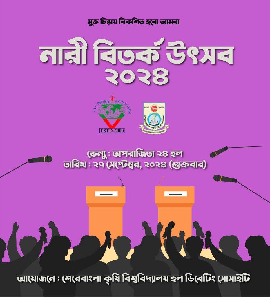 শেরেবাংলা কৃষি বিশ্ববিদ্যালয় ডিবেটিং সোসাইটি মহিলা ৩ হলের শিক্ষার্থীদের নিয়ে ১ম নারী বিতর্ক উৎসব ২০২৪ এর আয়োজন করে । প্রতিযোগিতায় চ্যাম্পিয়ন হয় অপরাজিতা ২৪ হলের দল টিম ফোরবিয়ারিং।