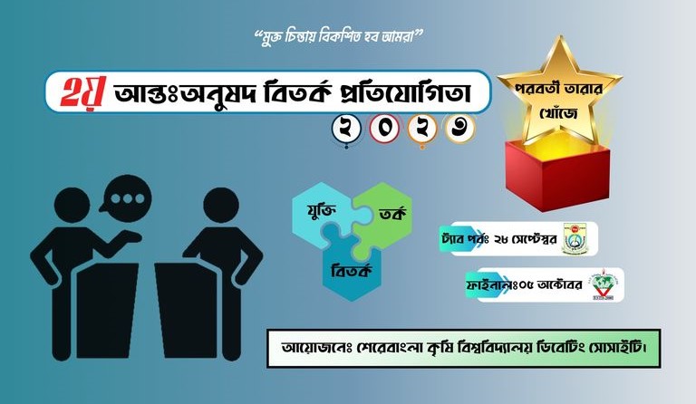 শেরেবাংলা কৃষি বিশ্ববিদ্যালয় ডিবেটিং সোসাইটি আয়োজিত ২য় আন্তঃ অনুষদ বিতর্ক প্রতিযোগিতা ২০২৩ অনুষ্ঠিত হয়। প্রতিযোগিতায় চ্যাম্পিয়ন হয় ফ্যাকাল্টি অব ফিশারিজ একুয়া কালচার এন্ড মেরিন সায়েন্স এর দল ফামস ডেলটা।